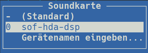alsamixerausführen - Mit "F6" die Soundkarte